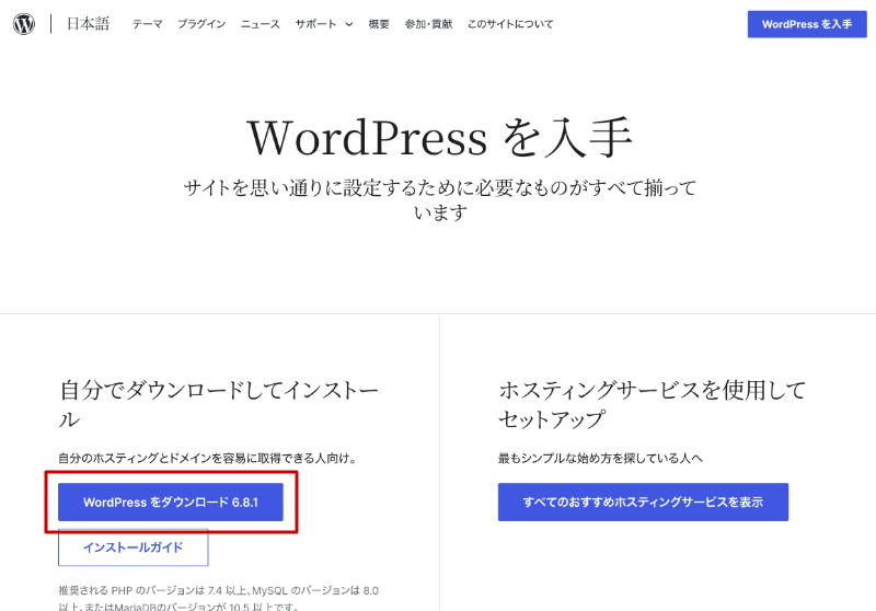 WPの本体プログラムは、公式サイトの以下ダウンロードページから入手できます。